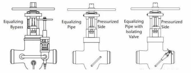 在上游閥座上鉆出的小孔是防止壓力鎖定的便宜手段。由于閥門將是單向的,因此浙江滄海閥門(http://www.lee-lan.com)的高壓平板閘閥入口和出口必須清楚地標有識別板和流向箭頭。安裝均壓管將隔腔連接到閥體的最高壓力側,是一種簡單而清晰可見的防止壓力鎖定的方法。這種布置的缺點是它使閥門單向。如前所述安裝均壓管,但通過添加隔離球閥可以防止壓力鎖定,同時具有使主閥雙向的附加優點。在正常的工廠運行期間關閉球形隔離閥,將在管道預熱期間或在可能發生壓力鎖定的任何其他情況時打開球形隔離閥。提供均衡旁通閥,除了作為旁路之外,還提供了防止在隔腔內產生壓力的裝置。在正常的工廠運行期間,關閉均衡旁路。在主閥關閉,管道預熱或在可能發生壓力鎖定的任何其他情況下,打開均衡旁路。